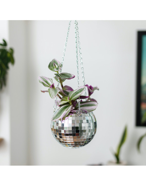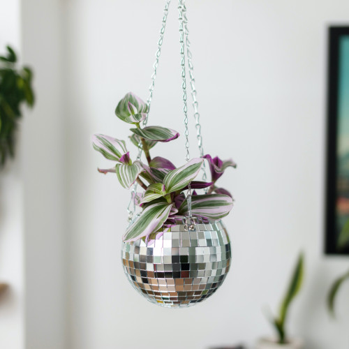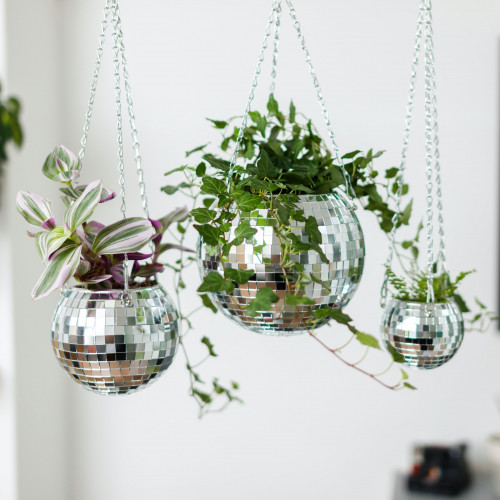 Cache-pot suspendu funk boule disco pour vos plus belles plantes!