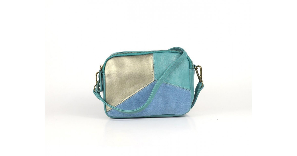 Petit sac de la marque Crazy Lou en cuir gris avec une partie métallisée et une autre en daim.