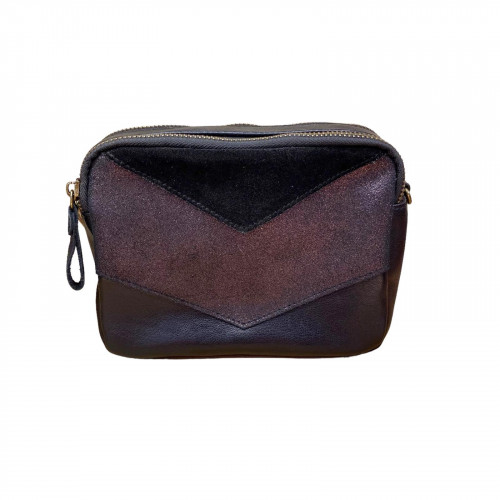 Petit sac de la marque Crazy Lou avec une partie en cuir et une autre en daim effet brillant.