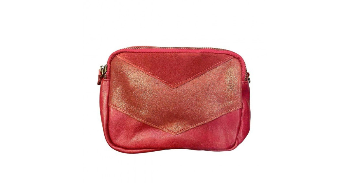 Petit sac de la marque Crazy Lou avec une partie en cuir et une autre en daim effet brillant.