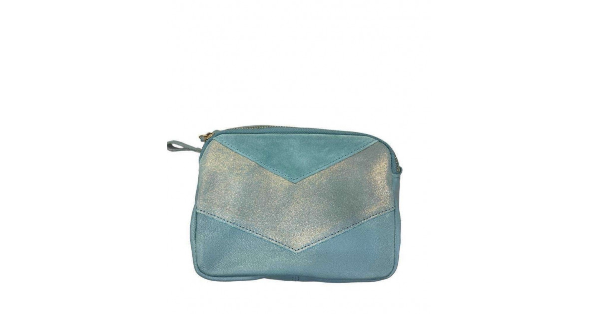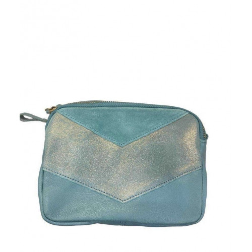 Petit sac de la marque Crazy Lou avec une partie en cuir et une autre en daim effet brillant.