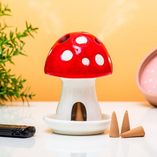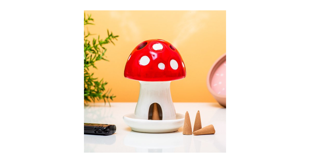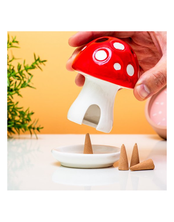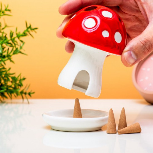 Brûleur de parfum champignon de Gift Republic dans lequel on peut placer des cônes d'encens (4 cônes bois de santal inclus)