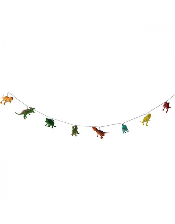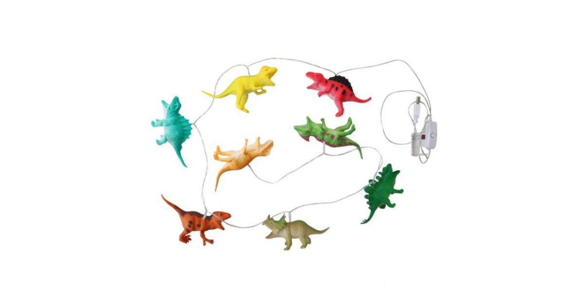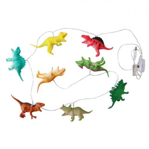 Le triceratops, le T-rex, le brontosaure et les autres espèces de dino sont reliés entre eux, éclairés grâce à des ampoules. Cette jolie lumière de fête fonctionne sur secteur avec un câble USB et interrupteur fournis. Tous ont des couleurs vives et gaies pour être visibles de jour, comme de nuit lorsqu'elle est allumée !