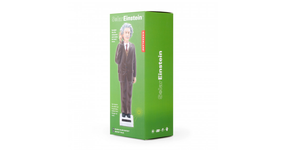 Sur une étagère, un rebord de fenêtre ou un tableau de bord, cette figurine Einstein n'a besoin que d'énergie solaire pour résoudre les équations les plus complexes. Dès que le soleil brille, Albert vous rappellera subtilement de faire fonctionner votre matière grise avant d'agir !