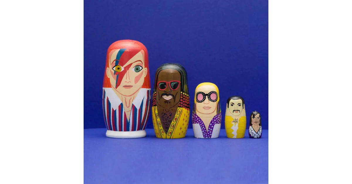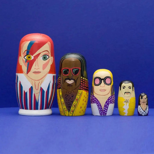 Ensemble de poupées russes en bois des icônes de la Pop des années 70.