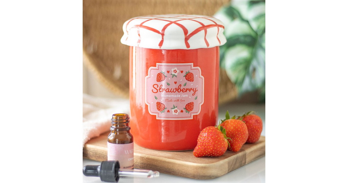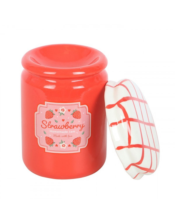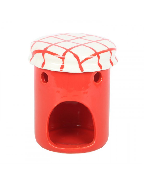 Brûleur en forme de pot de confiture à la fraise. Sa coupelle accueille la cire parfumée (fondant), les huiles essentielles, le parfum ou toute autre solution parfumée. Sa conception permet de placer facilement une bougie chauffe-plat à l’intérieur : la chaleur douce diffuse les senteurs sans les altérer, tandis que les ouvertures arrondies laissent apparaître un jeu de lumière apaisant.