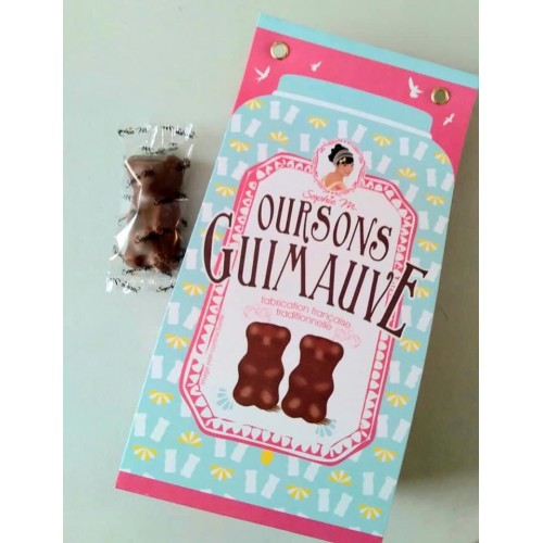sirop de glucose – fructose, sucre, eau, beurre de cacao, poudre de lait entier (4,2%), pâte de cacao, gélatine, lactose et protéines de lait, émulsifiant : lécithine, arômes, sel.