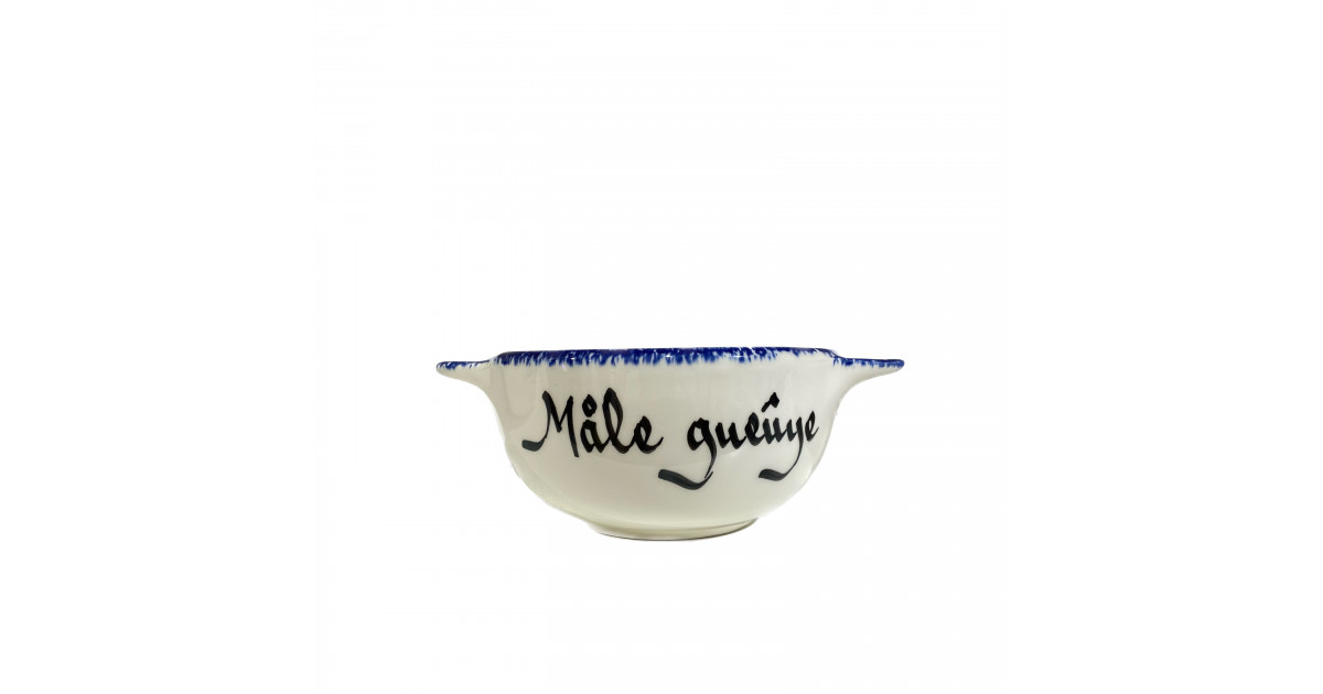 Sur le Wallbol, il y a une inscription wallonne peinte à la main et dans le fond du bol, une illustration de nos marionnettes liégeoises "Tchantchès et Nanesse"!
