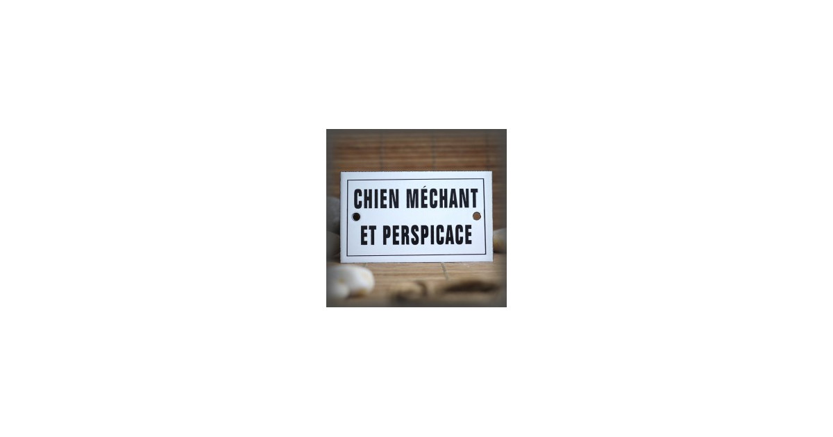 Plaque émaillée CHIEN MÉCHANT ET PERSPICACE