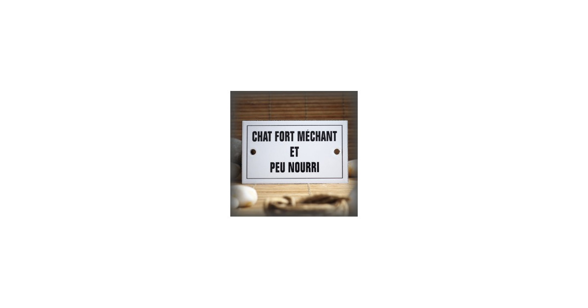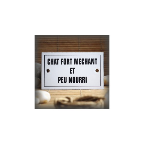Plaque émaillée CHAT FORT MÉCHANT ET PEU NOURRI