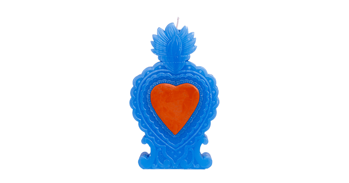Bougie aux couleurs vives inspirée du Milagro mexicain.