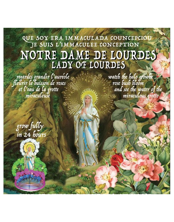 Regarde grandir l'auréole, fleurir le buisson de roses et l'eau de la grotte miraculeuse!